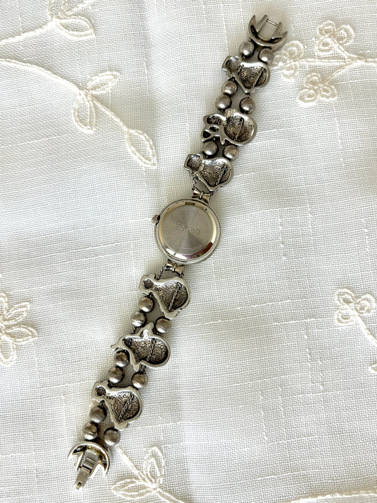 Silver Ornate Band Rhinestone Quartz Watch