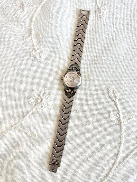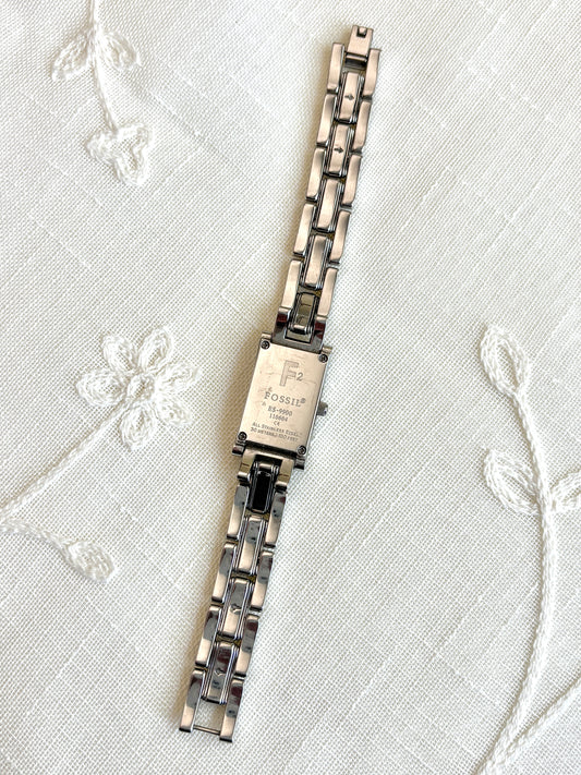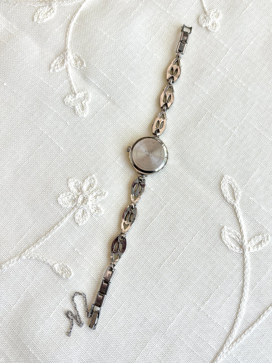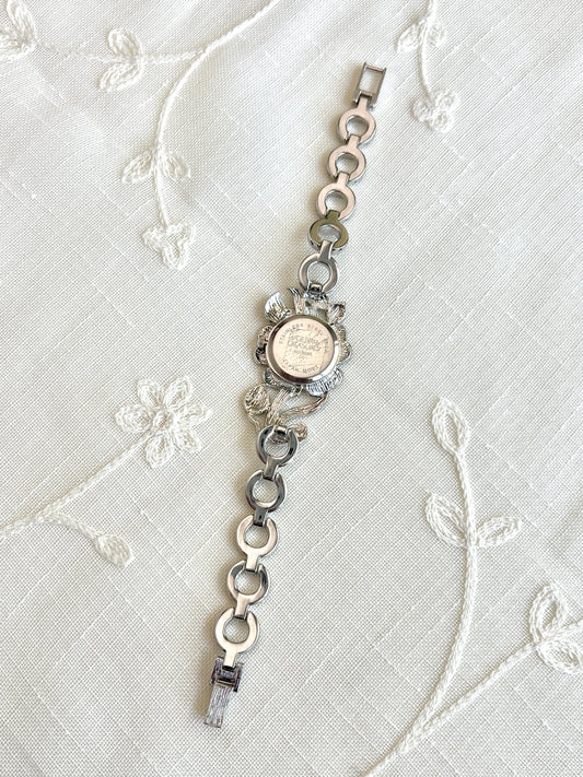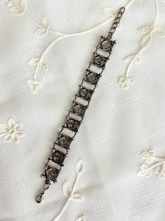Vintage Black Enamel Silver Tone Ornate Bracelet