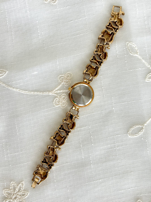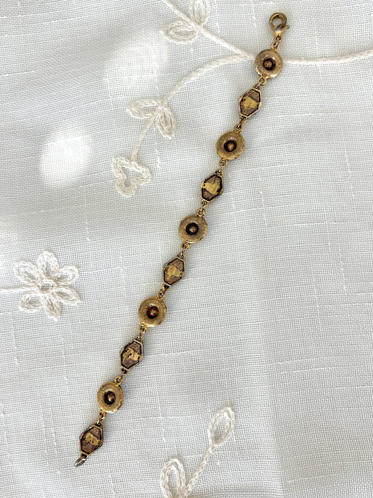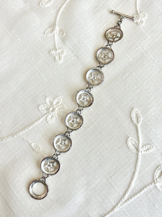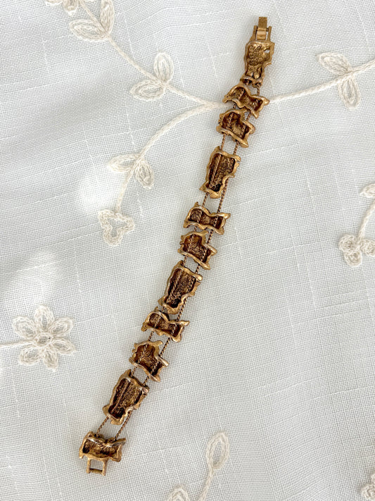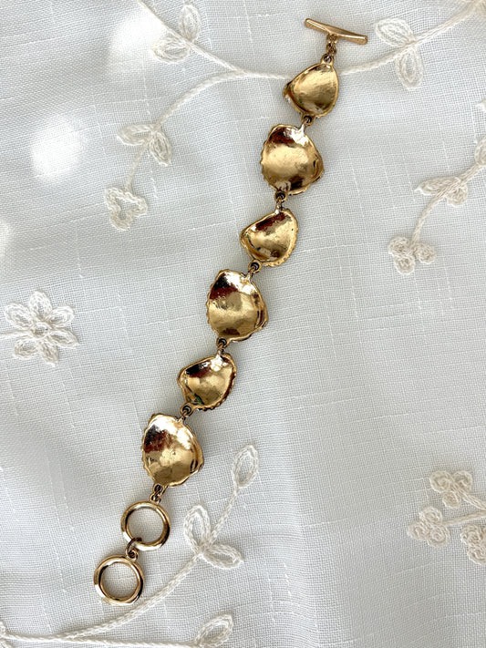 Gold Tone Rhinestone Shell Toggle Bracelet