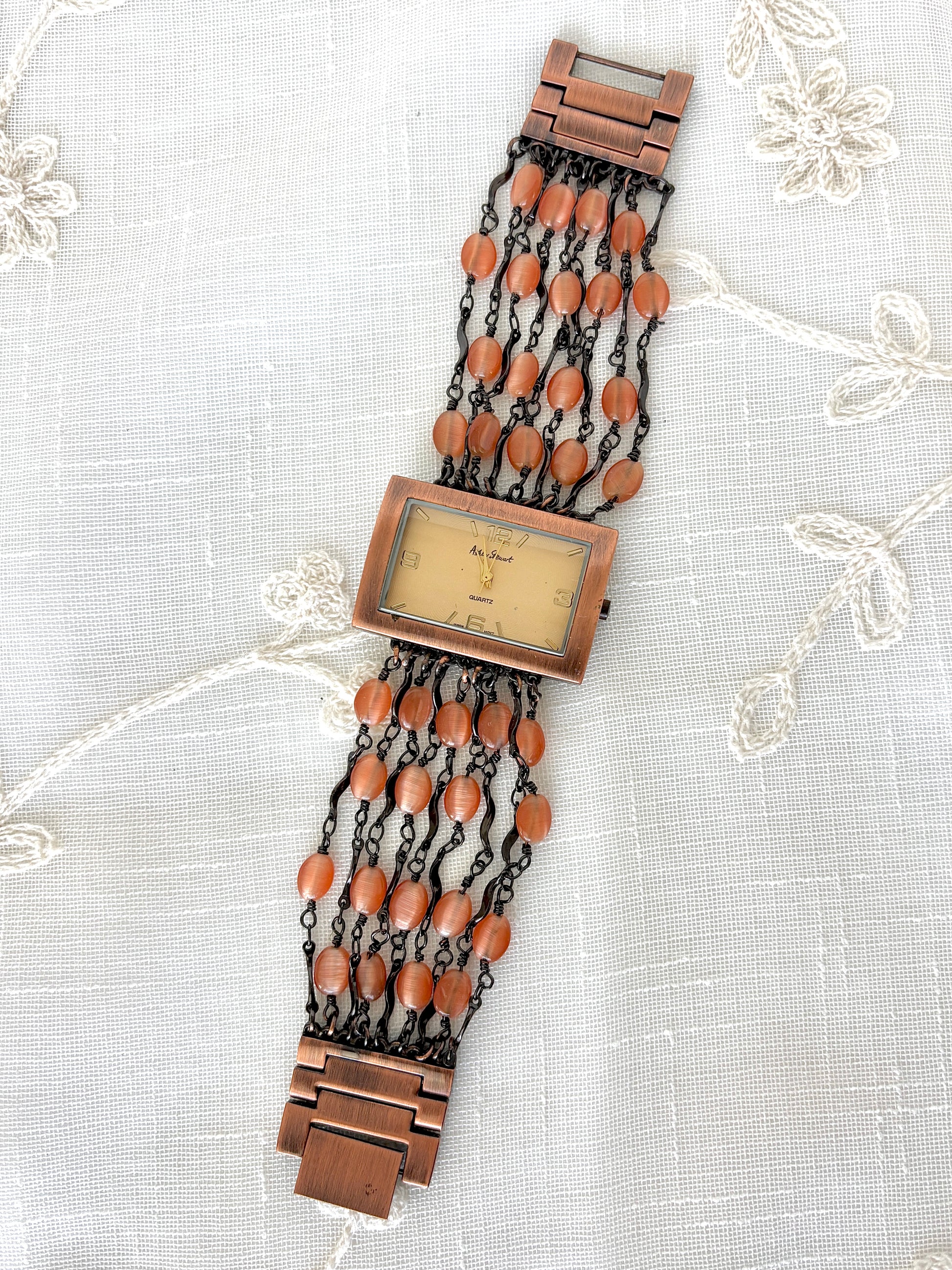 Ashely Stewart Cat’s Eye Beaded Antique Copper Tone Watch