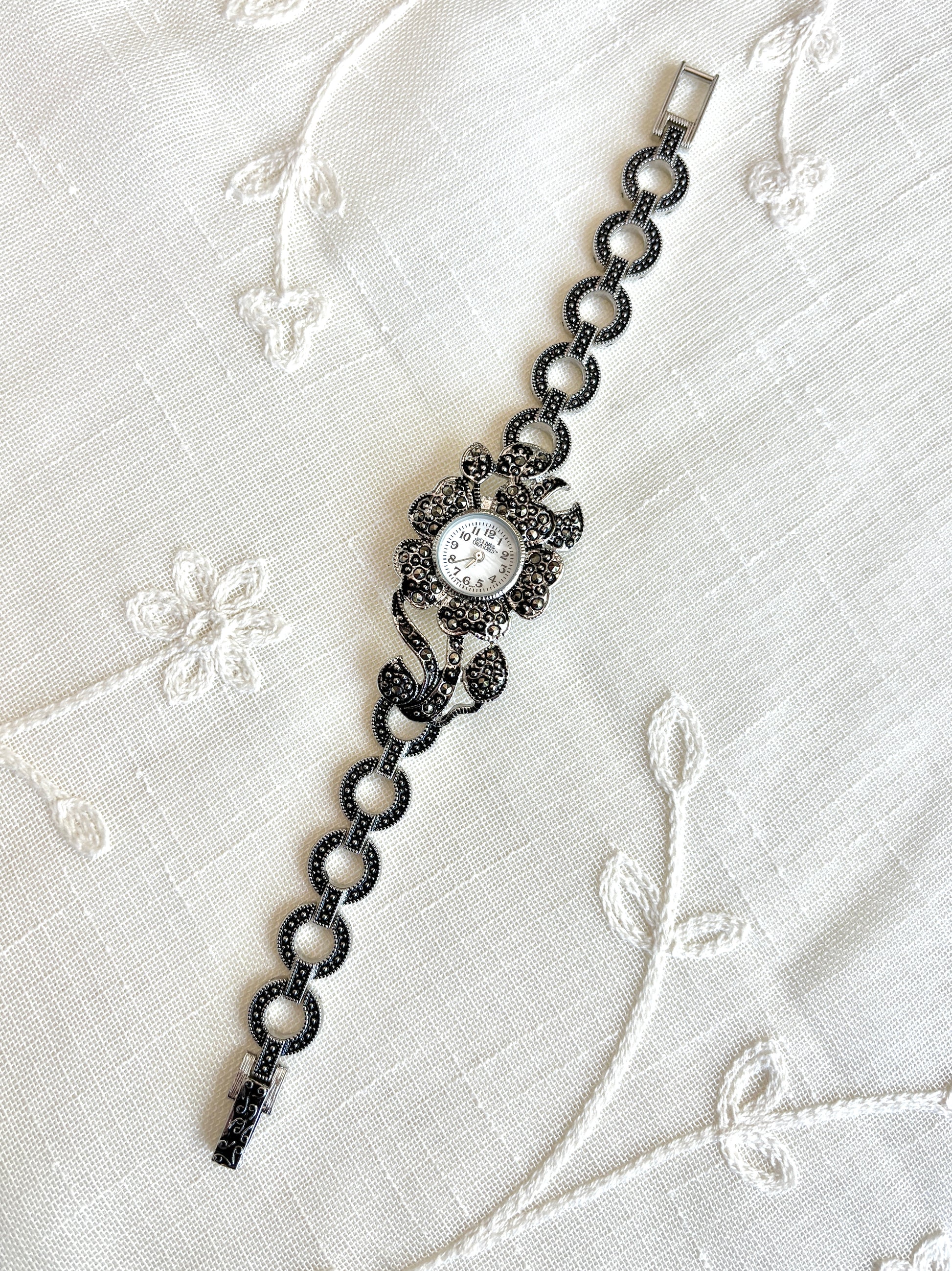 All jewelry has been purchased second-hand; therefore, minor scuffs and imperfections may be present. I try to note all obvious flaws, but may sometimes miss some. Please reach out for additional photos or questions about products if unsure about condition. Watches are untested and may simply need a battery change, but I cannot guarantee if they work.