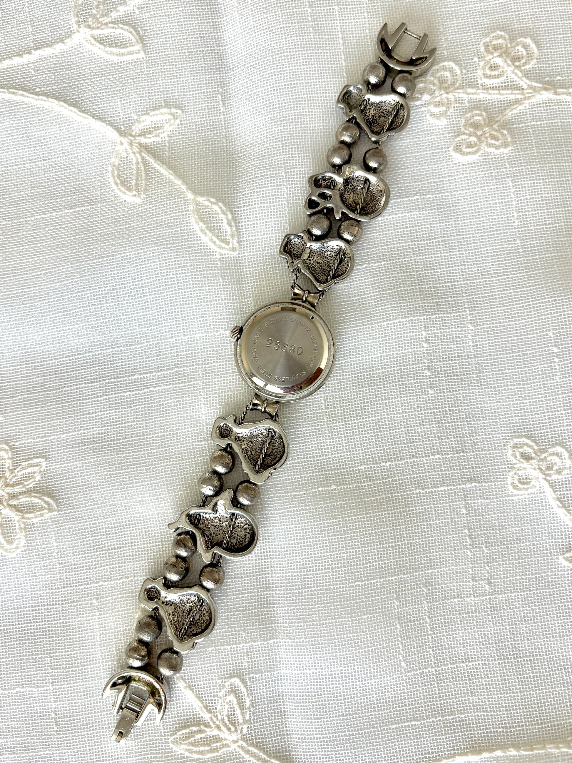 All jewelry has been purchased second-hand; therefore, minor scuffs and imperfections may be present. I try to note all obvious flaws, but may sometimes miss some. Please reach out for additional photos or questions about products if unsure about condition. Watches are untested and may simply need a battery change, but I cannot guarantee if they work.