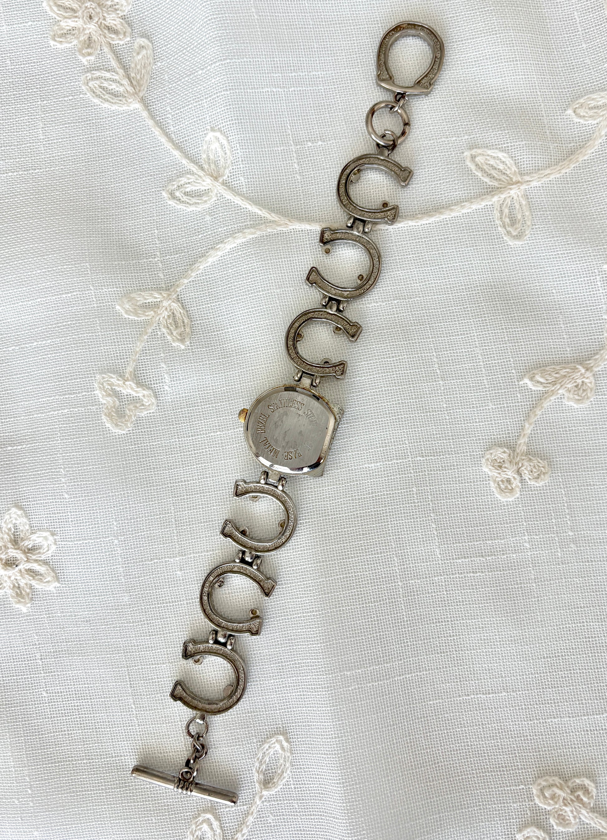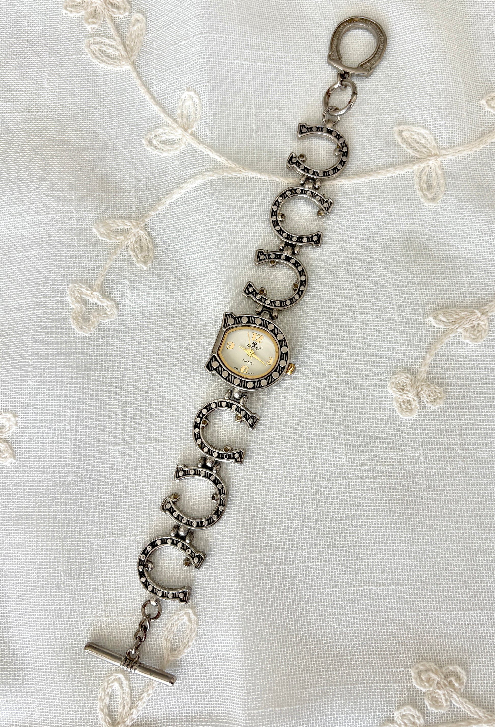 Cannes Horseshoe Silver Tone Band Toggle Closure Watch Bracelet