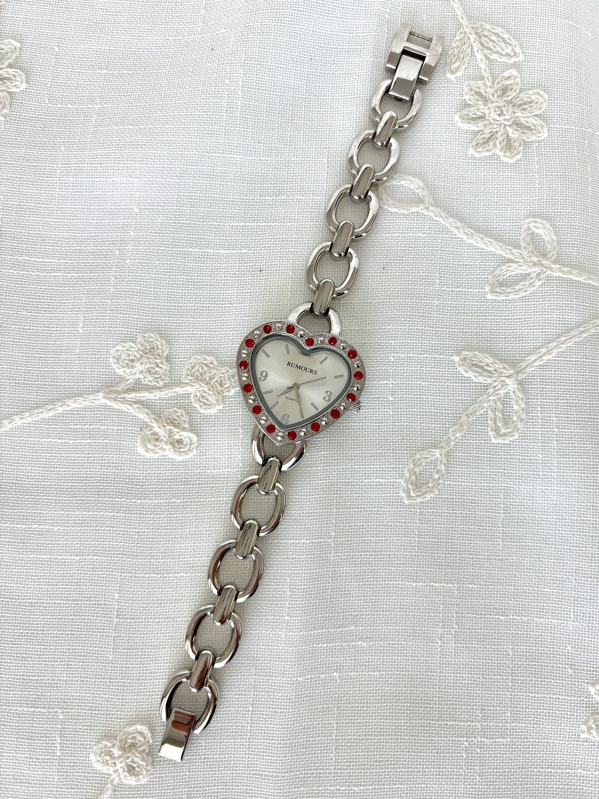 Rumours Heartshaped Rhinestone Bezel Chain Band Quartz Watch