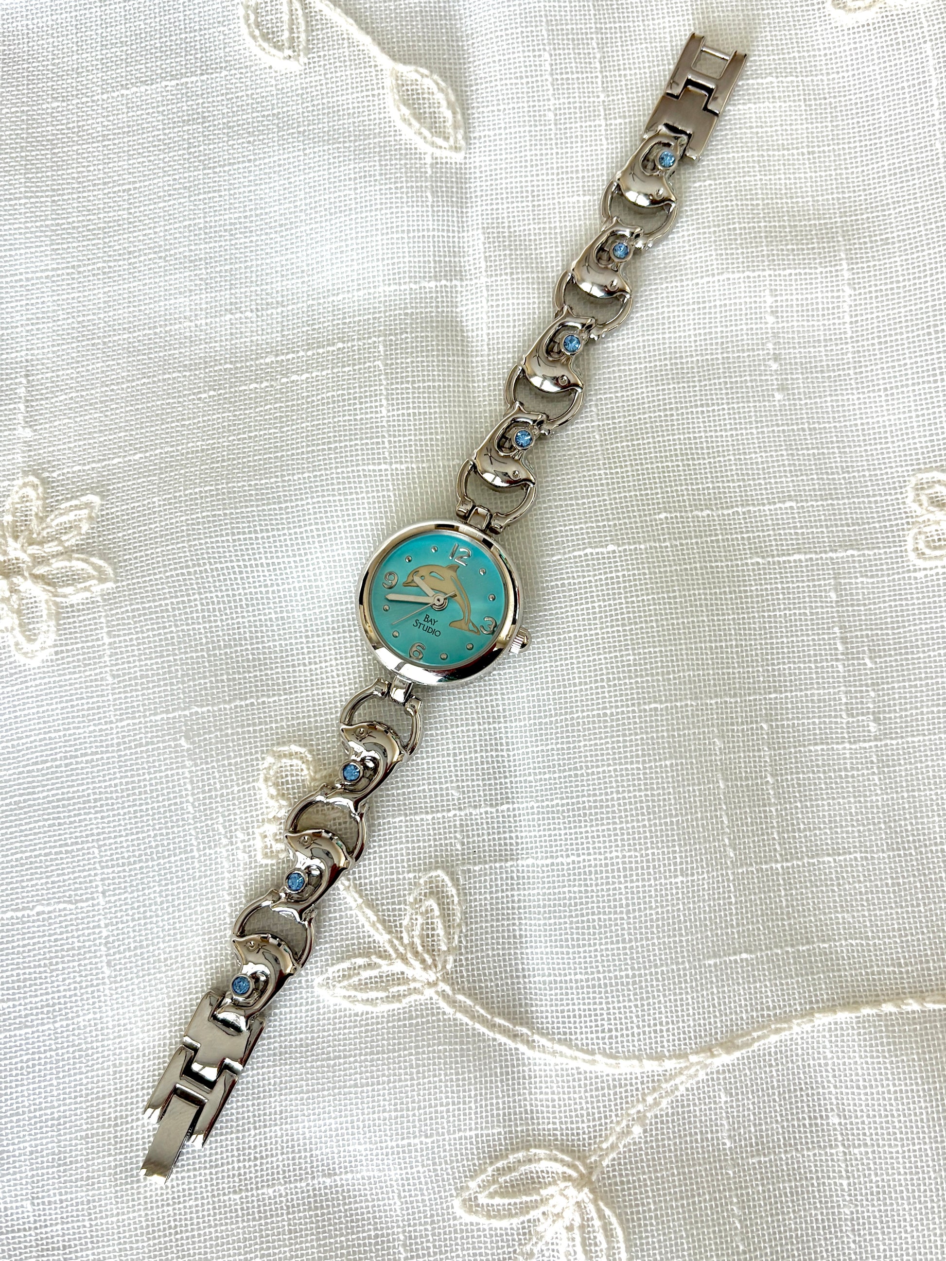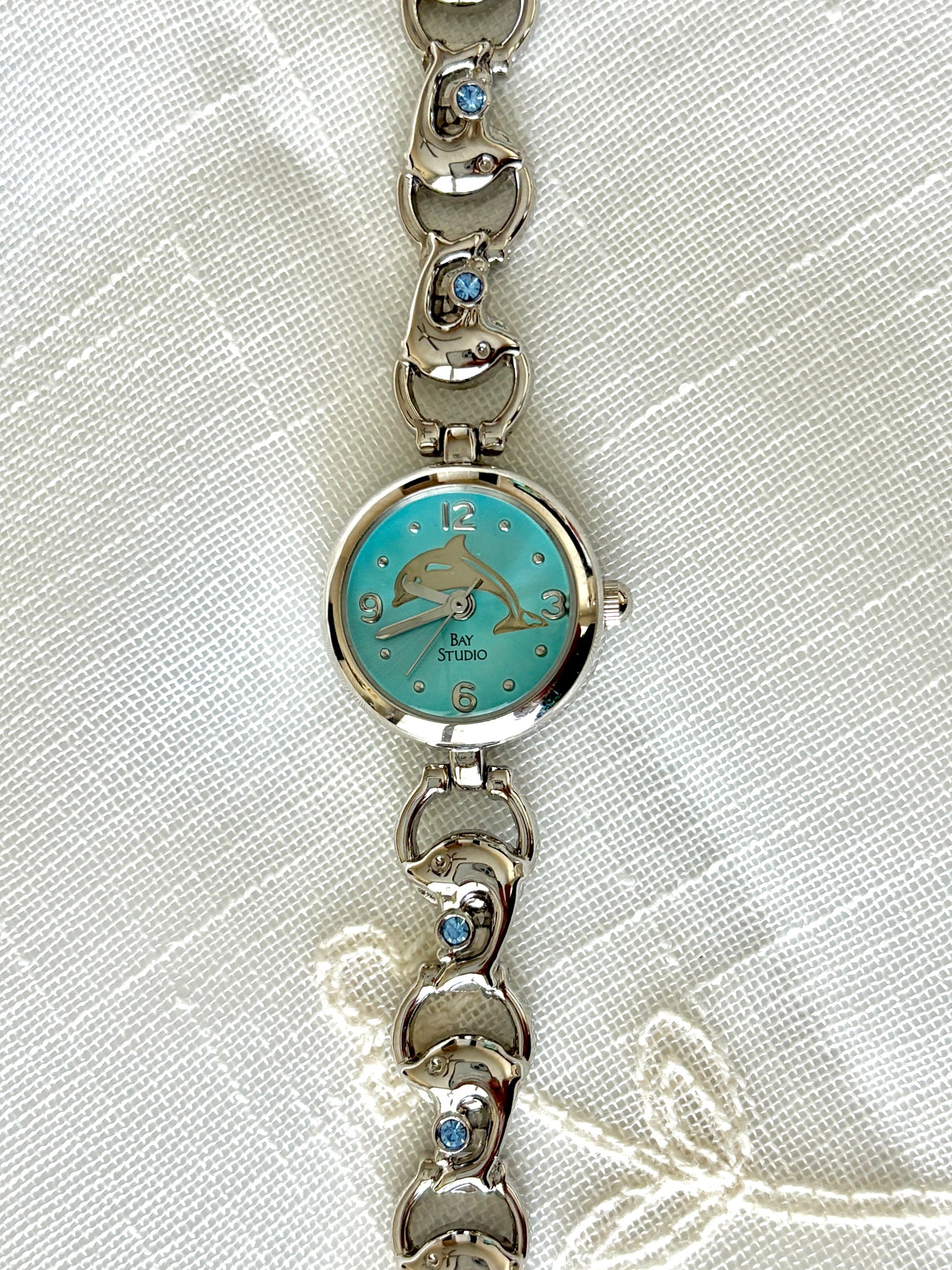 Silver Dolphin Motif Blue Face Bay Studio Watch