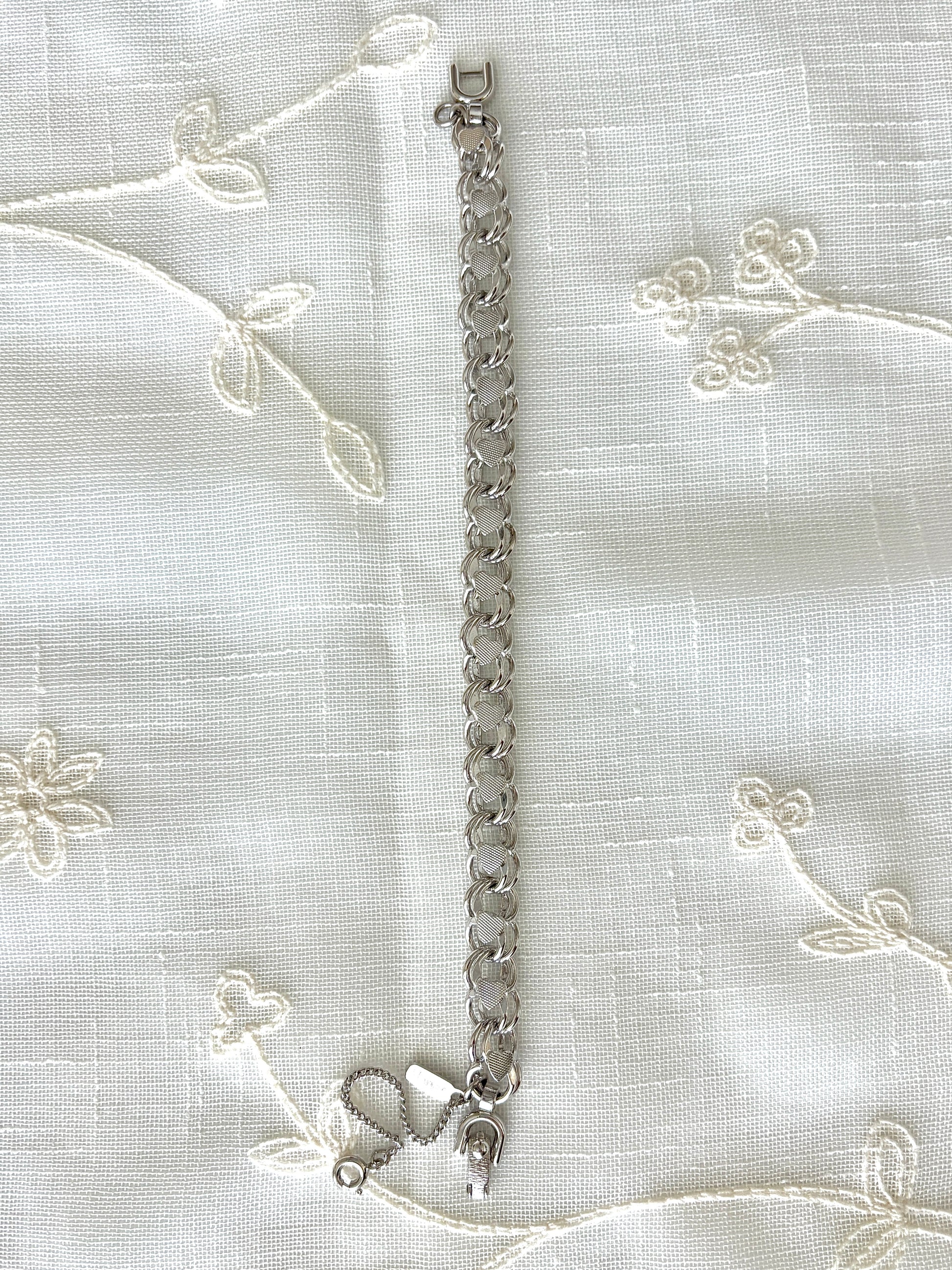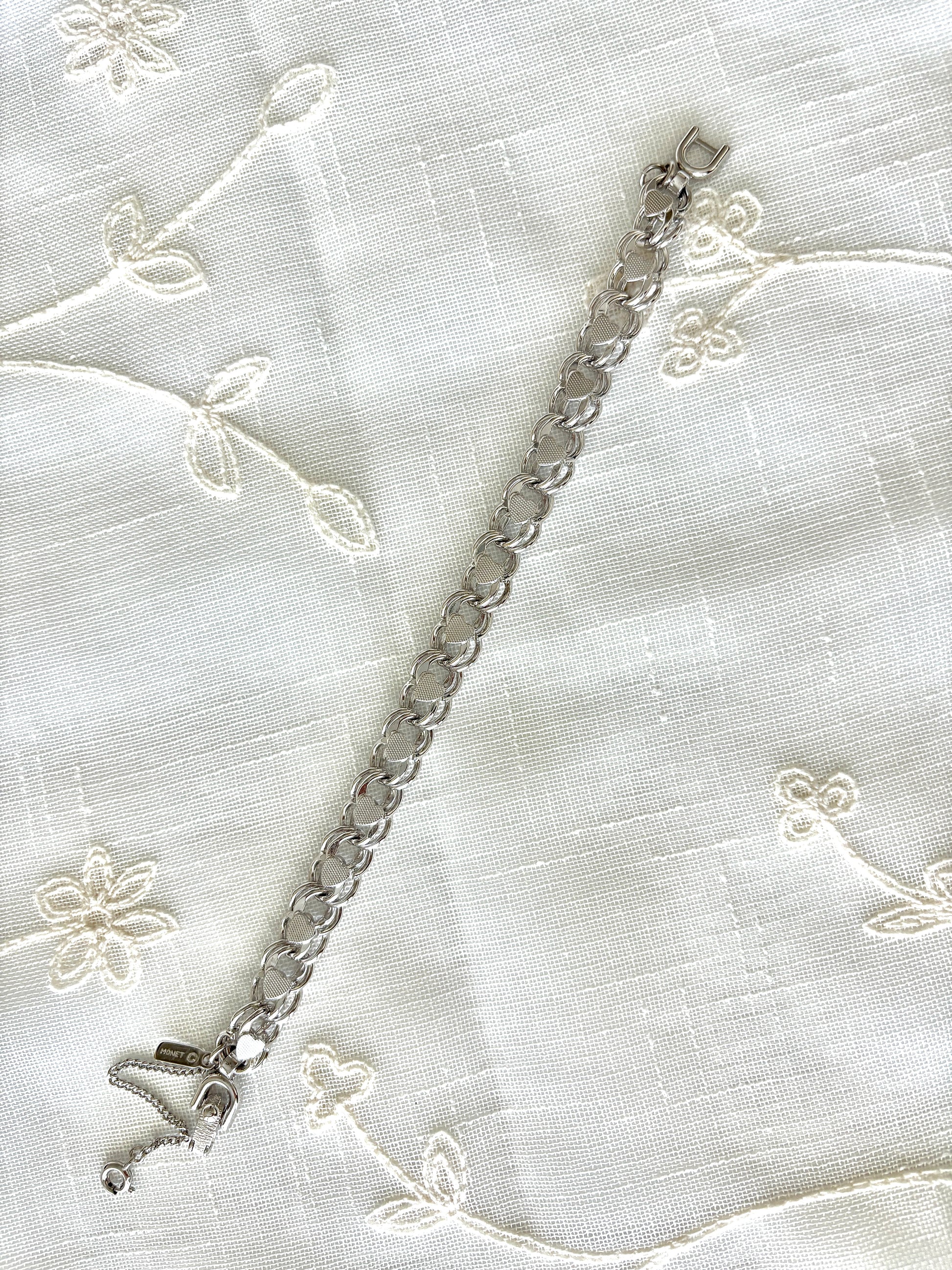 Vintage Monet Silver Double Rolo Heart Bracelet