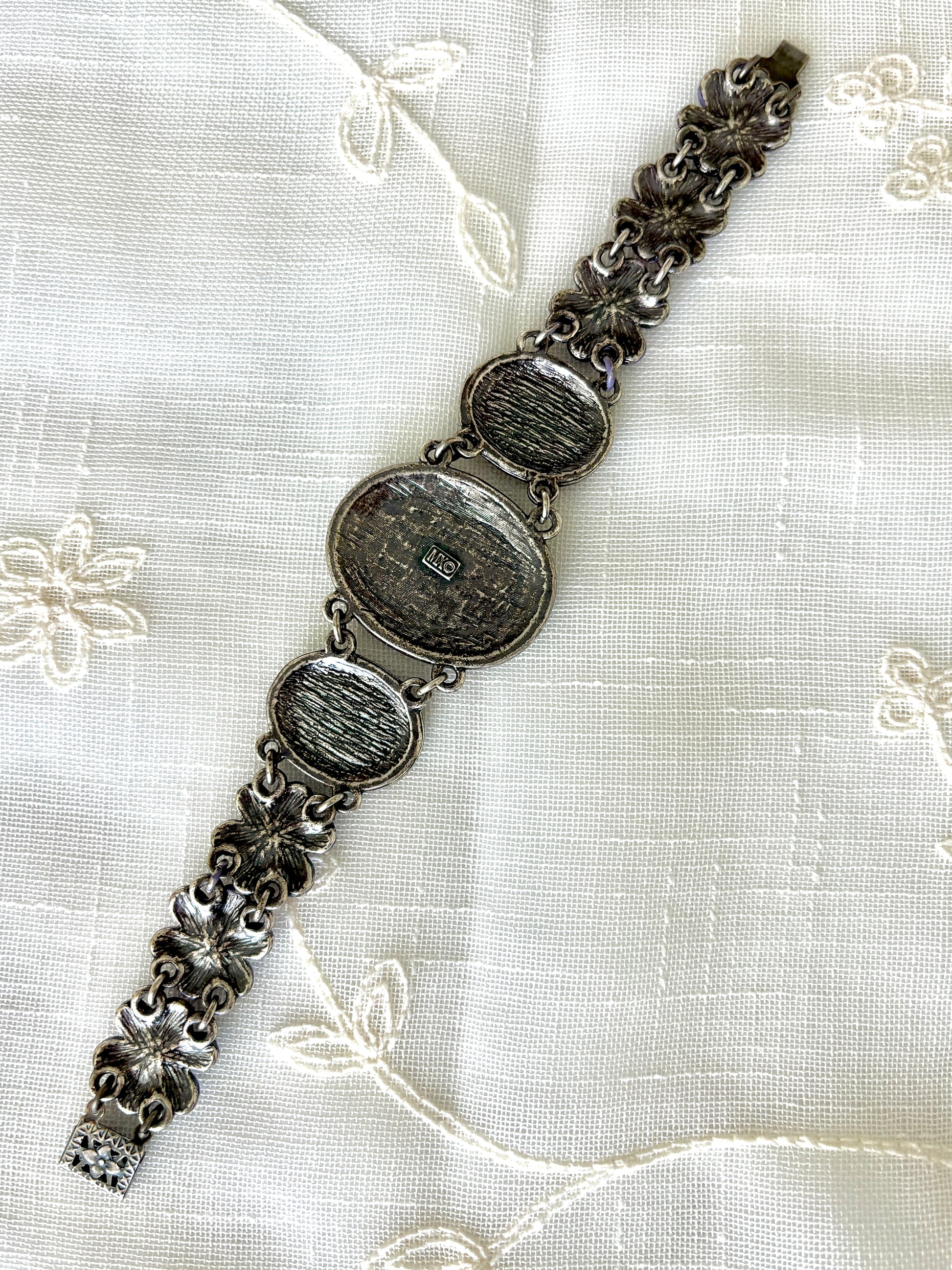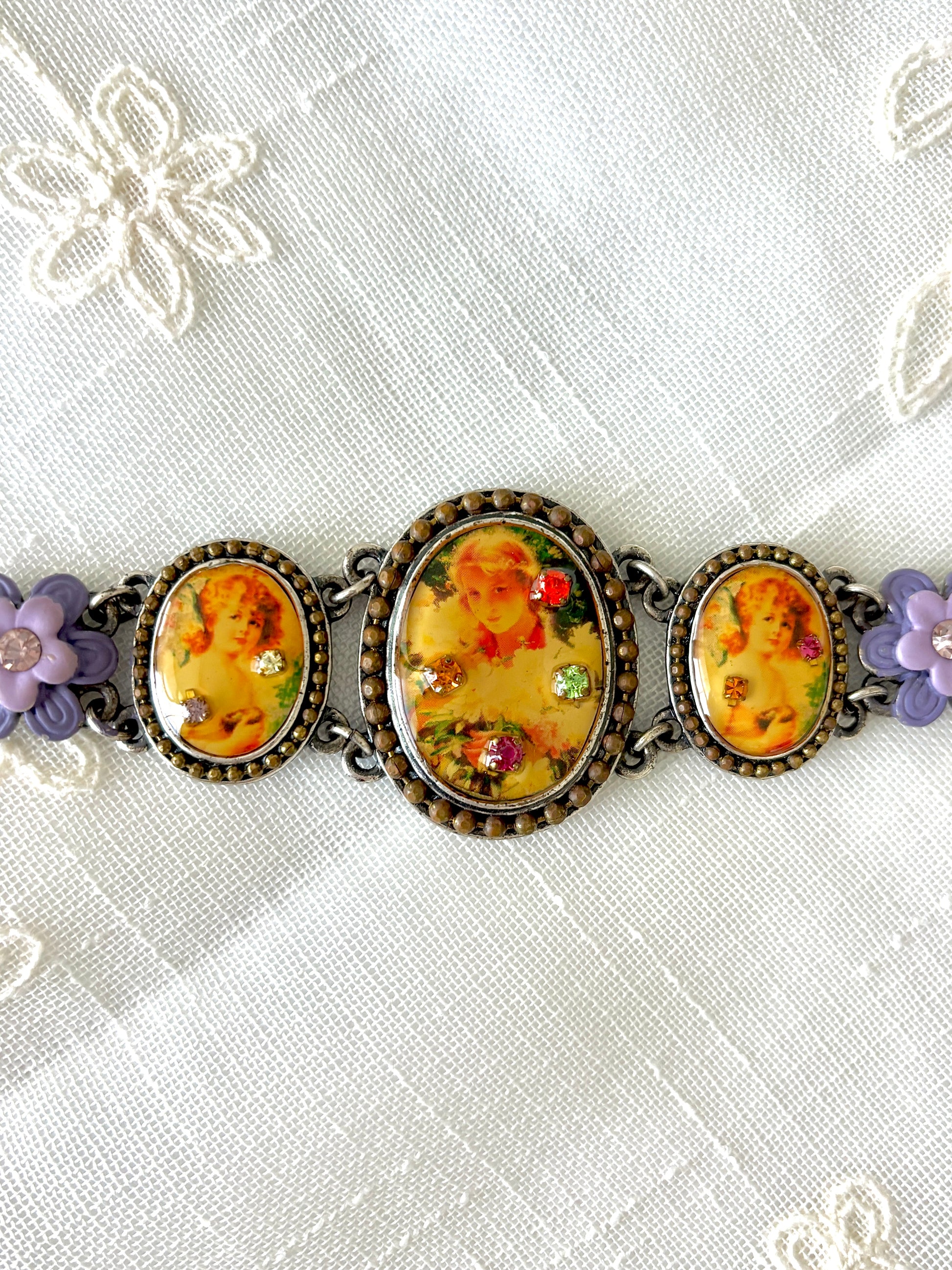 Vintage MX Michael Morrison Cherub Flower/Rhinestone Bracelet